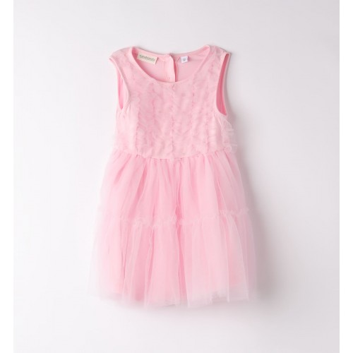 Rochie fetiță Minibanda din bumbac cu broderie perforată și fundiță aplicată, 3.8742PV24RZ