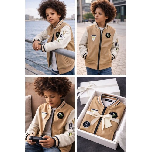 Geaca varsity pentru băieți Sarabanda este piesa ideală pentru un look modern, inspirat din moda sportivă americană. Cu un design clasic reinterpretat într-o manieră actuală, această geacă adaugă personalitate și stil oricărei ținute de sezon rece.
