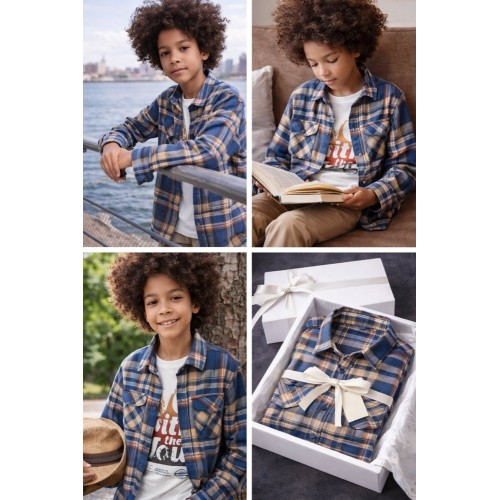 Cămașa iDO pentru băieți este realizată din twill de bumbac 100%, un material natural, rezistent și plăcut la atingere, cu un finisaj cald și catifelat, ideal pentru sezonul mai răcoros. Designul cu model pattern conferă un aspect modern și versatil, potrivit atât pentru ținute casual, cât și pentru ocazii speciale. Cămașa este prevăzută cu buzunare frontale funcționale și se închide cu capse, fiind ușor de îmbrăcat și confortabilă pentru copil.