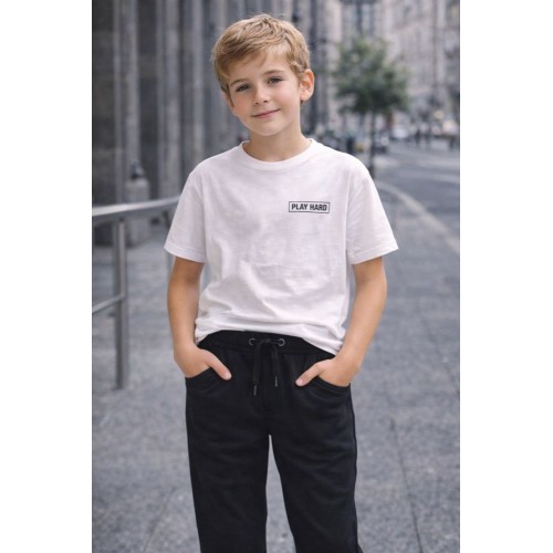 Pantalonii Sarabanda pentru băieți sunt alegerea perfectă pentru un stil practic și confortabil, adaptat ritmului activ al copiilor. Realizați din jerseu de bumbac elastic, aceștia oferă o senzație plăcută la purtare și libertate de mișcare pe tot parcursul zilei. Designul simplu și modern îi face ușor de asortat cu tricouri, hanorace sau bluze, fiind potriviți atât pentru școală, cât și pentru activități recreative. Talpa elastică și croiul lejer asigură o potrivire confortabilă, iar buzunarele laterale adaugă un plus de funcționalitate.