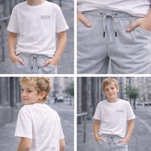 Pantalonii sport Sarabanda pentru băieți sunt creați pentru confort maxim și un stil relaxat, potrivit activităților de zi cu zi. Confecționați din jerseu de bumbac de calitate, aceștia oferă o textură moale și plăcută la purtare, fiind ideali pentru joacă, școală sau momentele de relaxare. Croiul lejer și manșetele elastice la bază asigură o potrivire confortabilă, în timp ce talia elastică cu șnur permite ajustarea ușoară pe corpul copilului. Designul simplu, în nuanță de gri, face ca pantalonii să fie ușor de asortat cu tricouri, hanorace sau bluze sport.