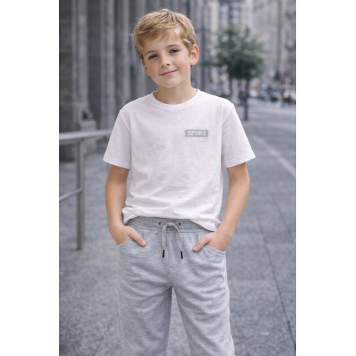 Pantaloni sport gri Sarabanda pentru băieți din jerseu de bumbac cu talie elastică, 0.X706TI23GRI