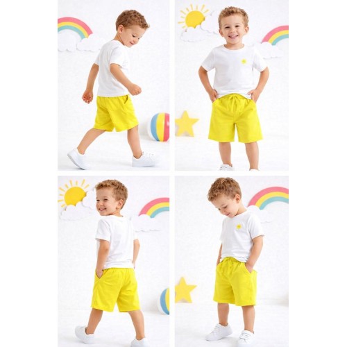 Bermudele pentru băieți iDO sunt confecționate din bumbac 100% de calitate superioară, asigurând confort, respirabilitate și libertate de mișcare pe tot parcursul zilei. Modelul uni, într-o nuanță veselă de galben, este ușor de asortat și adaugă un plus de energie ținutelor de vară.