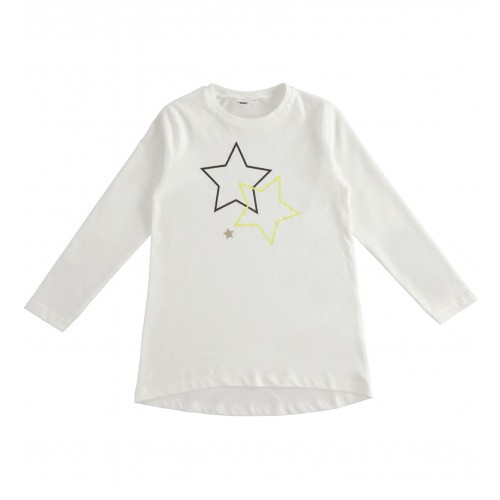 Bluză albă cu mânecă lungă pentru fete Sarabanda din jerseu elastic cu imprimeu stele, 4.5331TI23ALB