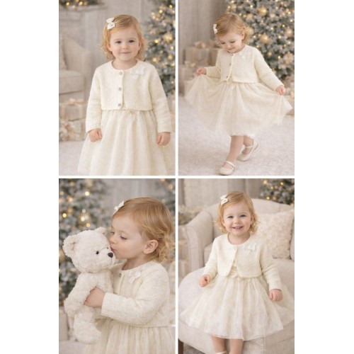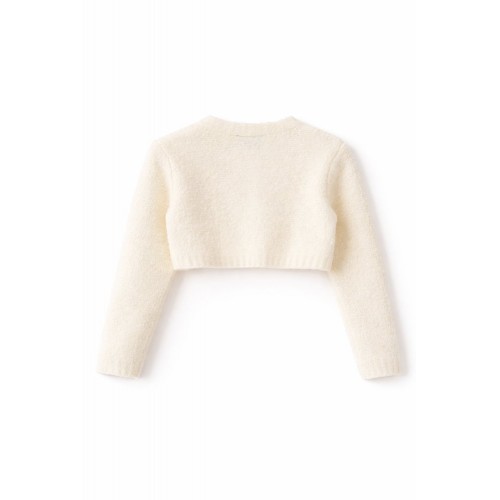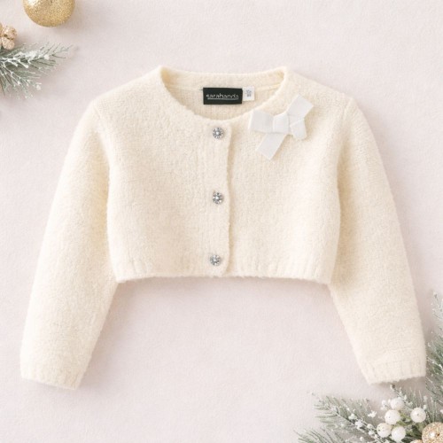 Bolero-ul elegant pentru fetițe este o piesă vestimentară rafinată, ideală pentru completarea ținutelor de ocazie sau a celor casual-elegante. Realizat dintr-un material moale și plăcut la atingere, acest pulover tip bolero oferă confort și libertate de mișcare pe tot parcursul purtării. Designul este evidențiat de gulerul rotund, sistemul de închidere cu nasturi decorați cu aplicații tip stras și fundița delicată aplicată pe partea frontală, care adaugă un plus de eleganță. Croiala scurtă și mânecile lungi fac acest bolero potrivit pentru rochii, fuste sau compleuri, fiind o alegere versatilă pentru evenimente speciale, serbări sau ieșiri în familie.