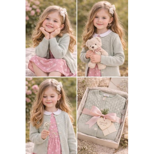 Cardiganul este ideal pentru școală, evenimente speciale sau plimbări, fiind o alegere inspirată pentru garderoba fetelor care îmbină eleganța cu funcționalitatea.