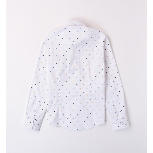 Cămașă Albă pentru Băieți Sarabanda din Bumbac Elastic cu Model Colorat, 0.7508TI23ALB