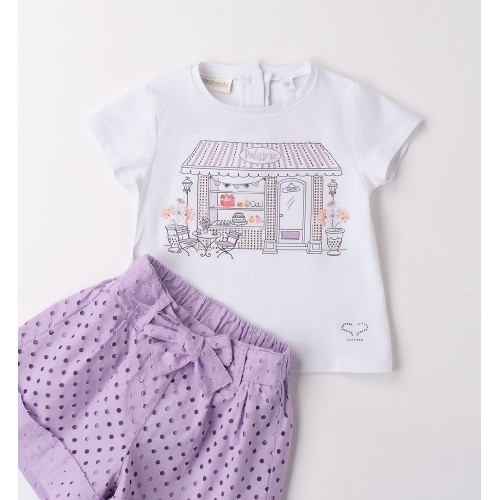 Compleu de vară fete Sarabanda cu tricou imprimat și pantaloni scurți, 0.B351PV25MV
