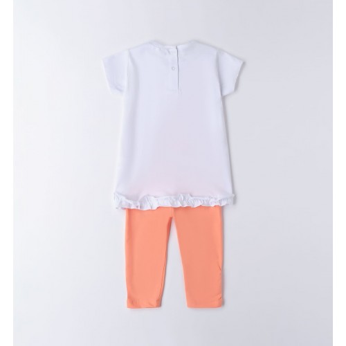 Compleu de vară pentru fete Sarabanda din bumbac elastic – tricou cu imprimeu floral și colanți, 0.B350PV25ORG