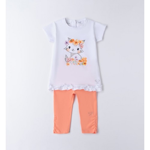 New Compleu de vară pentru fete Sarabanda din bumbac elastic – tricou cu imprimeu floral și colanți, 0.B350PV25ORG