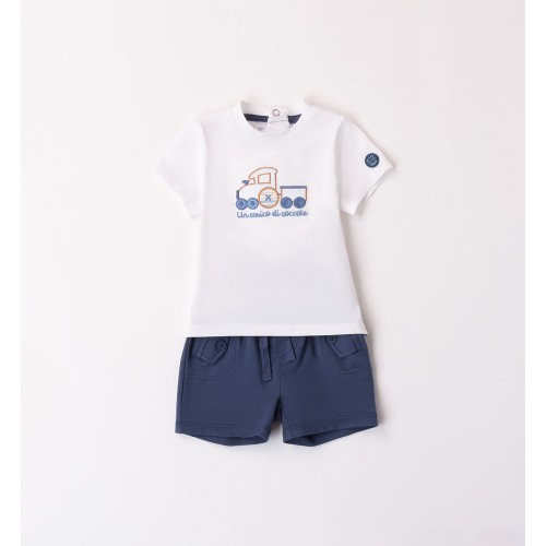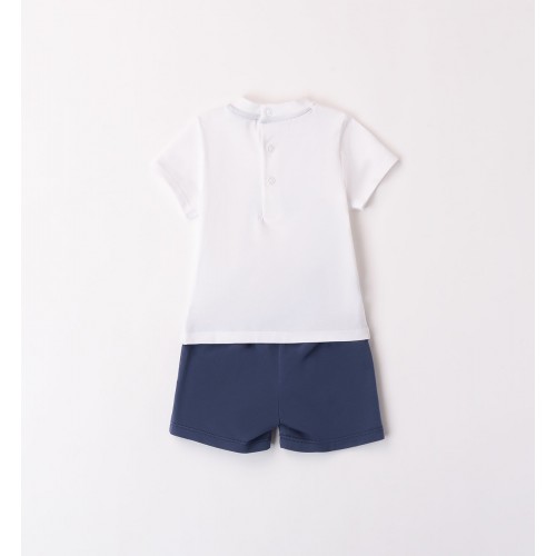Compleul Minibanda pentru băieți este o alegere practică și adorabilă pentru sezonul cald. Setul este format dintr-un tricou alb și pantaloni scurți bleumarin, gândite pentru confort și libertate de mișcare.