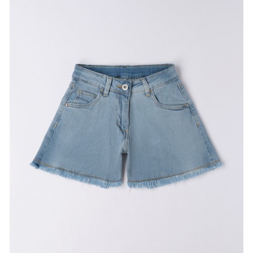 Pantaloni scurți iDO fete din denim elastic, cu cinci buzunare și tiv cu franjuri, 4.6873PV23BL