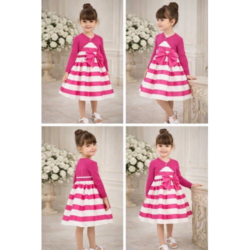 Rochie fără mâneci pentru fete iDO, confecționată din poplin de bumbac elastic, model in dungi, cu fundă mare aplicată în talie. Finisata cu căptușeală din bumbac. Inserțiile din tul conferă fustei un plus de volum. Lungimea este până la genunchi. Se inchide la spate cu un fermoar invizibil.