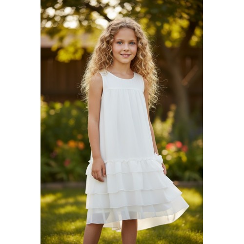 Rochia elegantă pentru fete Sarabanda este alegerea perfectă pentru evenimente speciale, petreceri sau ceremonii. Confecționată din voal fin și vaporos, rochia oferă o cădere plăcută și un aspect elegant. Modelul fără mâneci asigură confort și libertate de mișcare, fiind ideal pentru sezonul cald.