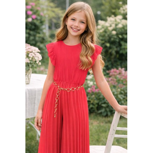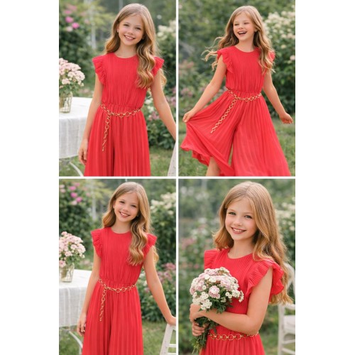 Salopetă elegantă fete iDO din voal plisat cu curea lanț, căptușeală din viscoză, 4.8546PV24CO