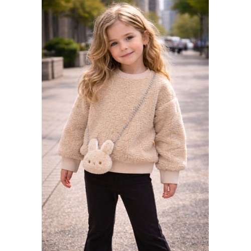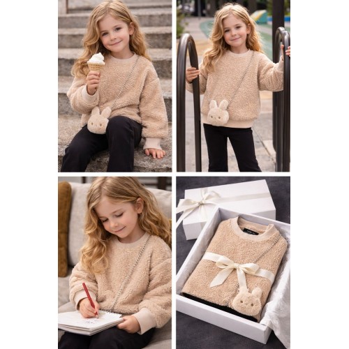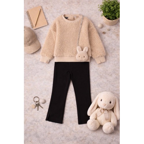Set Sarabanda pentru fete cu hanorac pufos și pantaloni evazați, cu geantă iepuraș,0.7327TI23BJ