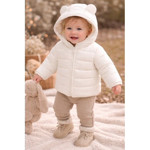 Geacă nou-născut iDO din fâș cu glugă și fermoar – protecție ușoară și confort, 4.5226TI22ALB