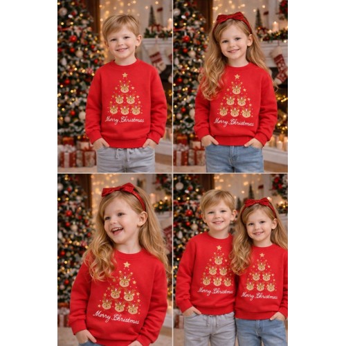 Designul festiv este pus în valoare de un imprimeu tematic de Crăciun aplicat frontal, care adaugă un aspect vesel și atractiv. Modelul este prevăzut cu închidere la spate cu nasturi, facilitând îmbrăcarea și dezbrăcarea, în special pentru copiii mici.