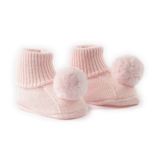 Modelul are manșetă tricotată, care ajută șoseta să stea bine pe picior fără să strângă, și un pompon pufos aplicat în față, ce adaugă un detaliu adorabil și jucăuș. Mărimea universală este potrivită pentru bebeluși între 0 și 18 luni, în funcție de conformație.