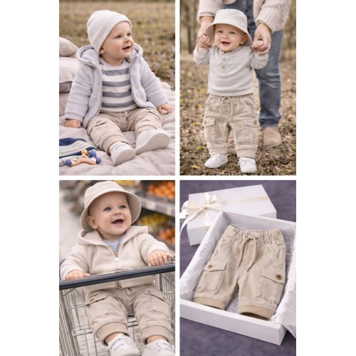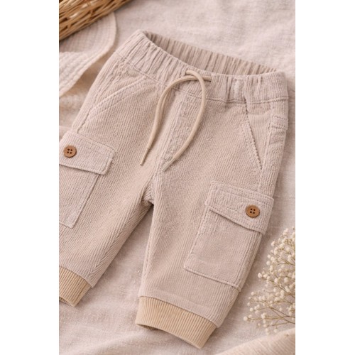 Designul tip cargo, cu buzunare laterale aplicate și nasturi decorativi, adaugă un plus de stil și funcționalitate, transformând pantalonii într-o piesă practică și modernă. Sunt ideali pentru purtare zilnică, plimbări sau joacă, fiind ușor de asortat cu bluze, body-uri sau hanorace.