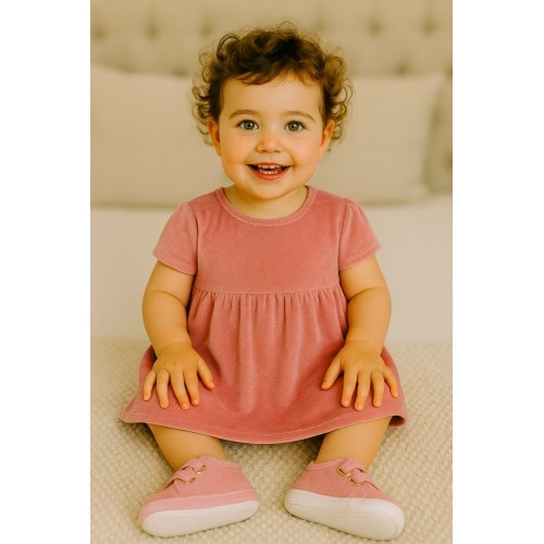 Confecționați din materiale moi și plăcute la atingere, acești pantofi asigură protecție și stabilitate pentru pașii de început ai micuței tale.