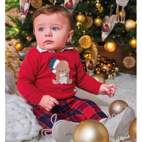 Pulover Crăciun Baby Minibanda din bumbac 100% cu broderie intarsia și nasturi pe umăr, 3.F661TI25RO