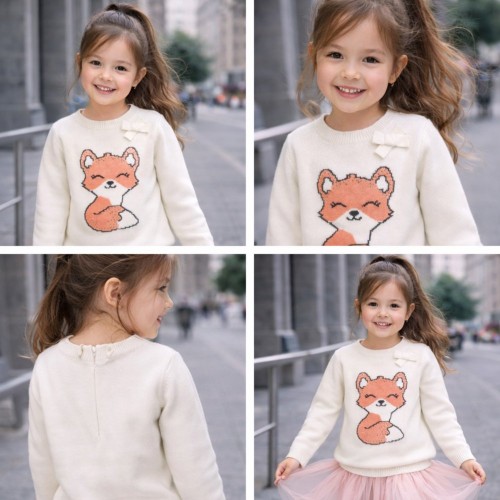 Puloverul iDO pentru fete este alegerea ideală pentru sezonul rece, combinând confortul termic cu un design delicat și elegant. Realizat din tricotaj fin și plăcut la atingere, acest model se remarcă prin motivul decorativ cu vulpe încrustată în partea frontală, completat de o fundă aplicată care adaugă un plus de rafinament. Gâtul rotund oferă o croială clasică, ușor de integrat în orice ținută, iar prinderea la spate cu nasturi asigură o îmbrăcare rapidă și practică. Potrivit atât pentru purtarea zilnică, cât și pentru ocazii speciale, puloverul iDO este o piesă versatilă în garderoba fetițelor.