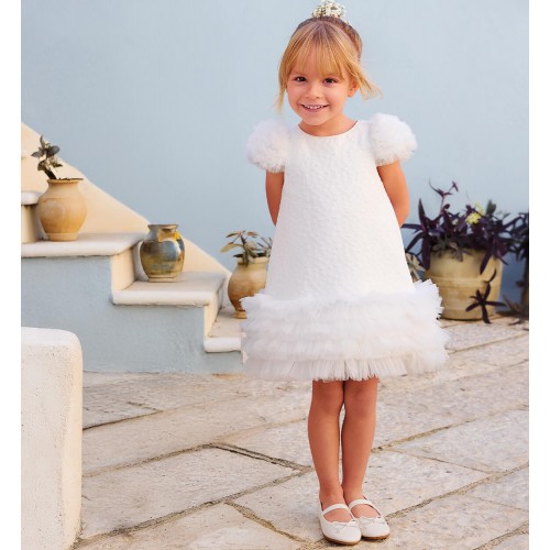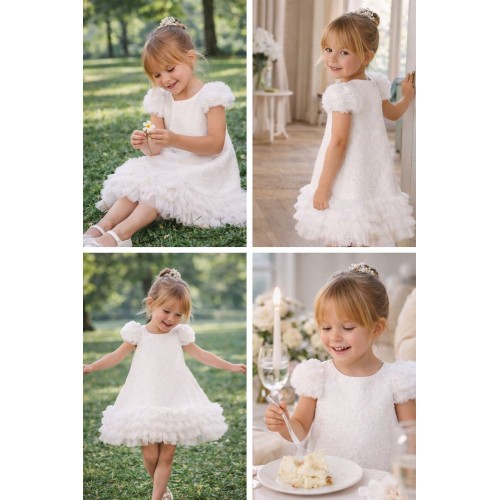 Rochia de ceremonie pentru fete Sarabanda este alegerea perfectă pentru momentele speciale din viața copilului tău. Confecționată din tul delicat, cu o căptușeală interioară din bumbac 100%, rochia oferă un echilibru ideal între eleganță și confort. Designul de culoare uni este completat de inserțiile fine din tul de la nivelul mânecilor, care adaugă un aer rafinat și delicat. Croiala lejeră permite libertate de mișcare, iar închiderea cu fermoar la spate asigură o îmbrăcare ușoară și o potrivire corectă. Este potrivită pentru ceremonii, nunți, botezuri, aniversări sau alte evenimente festive.