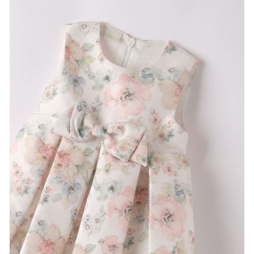Rochia elegantă pentru bebeluși iDO este perfectă pentru cele mai speciale momente din primul ei an de viață: botez, aniversări, petreceri sau ședințe foto. Modelul este fără mâneci și este confecționat din satin cu imprimeu floral delicat, în nuanțe pastelate, care oferă un aspect rafinat și romantic.