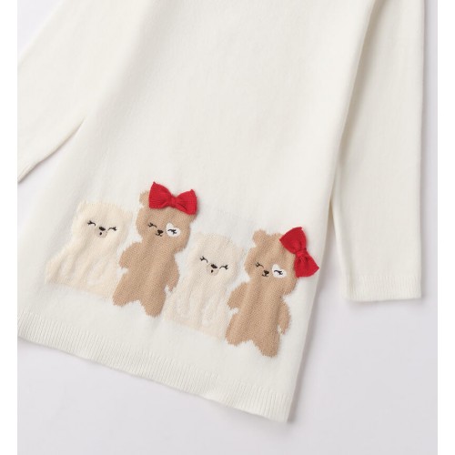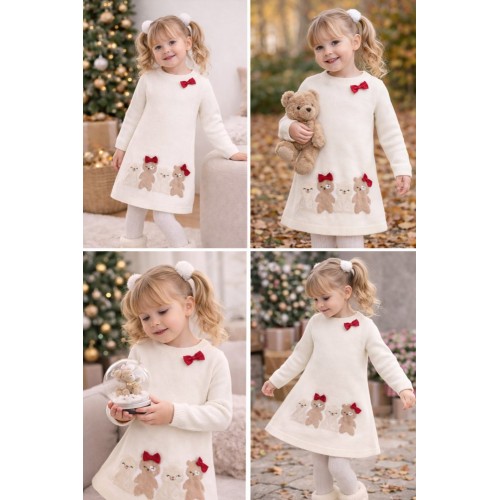 Rochia Sarabanda pentru fete este alegerea perfectă pentru un look delicat și confortabil în sezonul rece. Realizată din tricot de calitate, aceasta impresionează prin broderia intarsia cu ursuleți și fundițele aplicate, care adaugă un aer jucăuș și elegant. Croiala mini oferă libertate de mișcare, iar materialul moale este plăcut la atingere, ideal pentru purtare zilnică sau evenimente speciale. Rochia poate fi asortată ușor cu dresuri, cardigan sau ghete pentru o ținută completă și armonioasă.