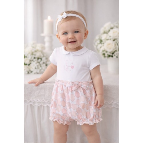 Modelul este prevăzut cu sistem de închidere cu capse la spate și pe interiorul coapselor, pentru o îmbrăcare ușoară și schimbarea rapidă a scutecului. Croiala lejeră permite libertate de mișcare, fiind ideală pentru plimbări, joacă sau activități zilnice în sezonul cald.