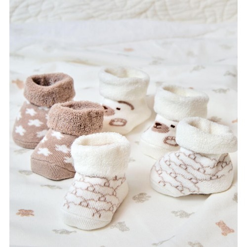 Designul unisex îi face potriviți atât pentru fetițe, cât și pentru băieței, iar modelele delicate adaugă un aspect adorabil oricărei ținute. Elasticul fin din compoziție asigură o fixare sigură, fără a strânge, menținând botoșeii la locul lor în timpul mișcărilor bebelușului.