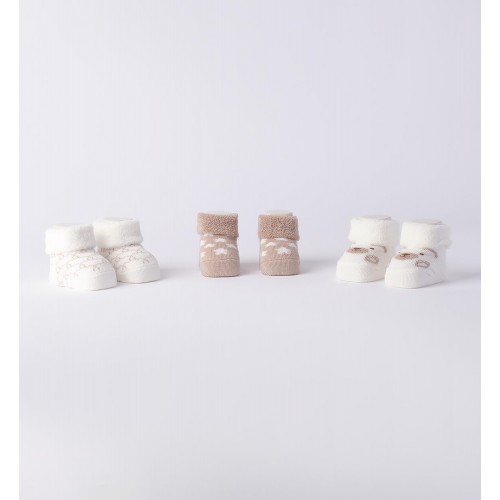 Setul de 3 perechi de botoșei Minibanda pentru bebeluși este creat pentru a oferi confort maxim, protecție delicată și un plus de stil în primele luni de viață. Realizați dintr-un amestec de bumbac de calitate, botoșeii sunt extrem de moi și plăcuți la atingere, fiind ideali pentru pielea sensibilă a bebelușilor.