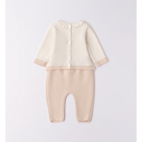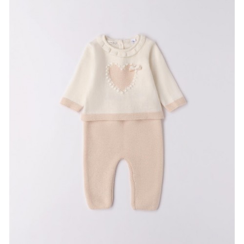 Set tricot Minibanda fetiță bebeluș bumbac lână crem cu inimă intarsia, 3.F761TI25BJ