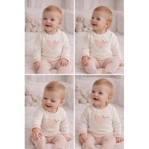 New Set tricot Minibanda fetiță bebeluș bumbac lână crem cu inimă intarsia, 3.F761TI25BJ
