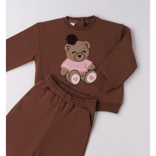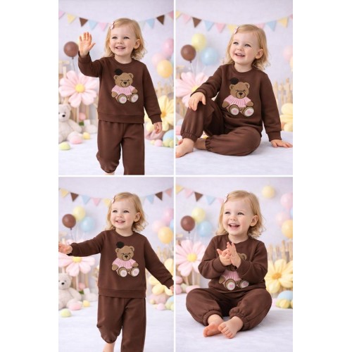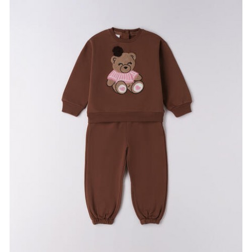 Treningul pentru fete iDO este confecționat din fleece din bumbac elastic, cu interior ușor periat, asigurând un plus de confort și căldură în zilele mai răcoroase. Bluza cu mânecă lungă este decorată cu broderie tip burete reprezentând un ursuleț și aplicație florală, oferind un aspect delicat și modern. Pantalonii sunt prevăzuți cu talie elastică și manșete la bază pentru o potrivire comodă și libertate de mișcare. Designul în nuanță de maro este ușor de asortat și potrivit atât pentru activitățile zilnice, cât și pentru momentele de relaxare.