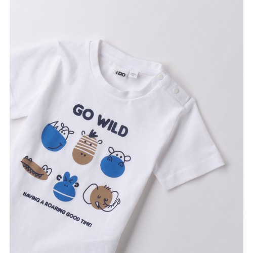 Tricoul pentru băieți iDO este realizat din bumbac 100% de calitate superioară, fiind ideal pentru pielea sensibilă a copiilor. Modelul alb este decorat cu un imprimeu vesel și colorat cu animale stilizate și mesajul „Go Wild”, perfect pentru un look jucăuș și modern. Croiala lejeră și materialul respirabil asigură confort pe tot parcursul zilei, fie că este purtat la joacă, la plimbare sau la grădiniță. Tricoul este ușor de asortat și reprezintă o alegere practică pentru garderoba zilnică a copilului.